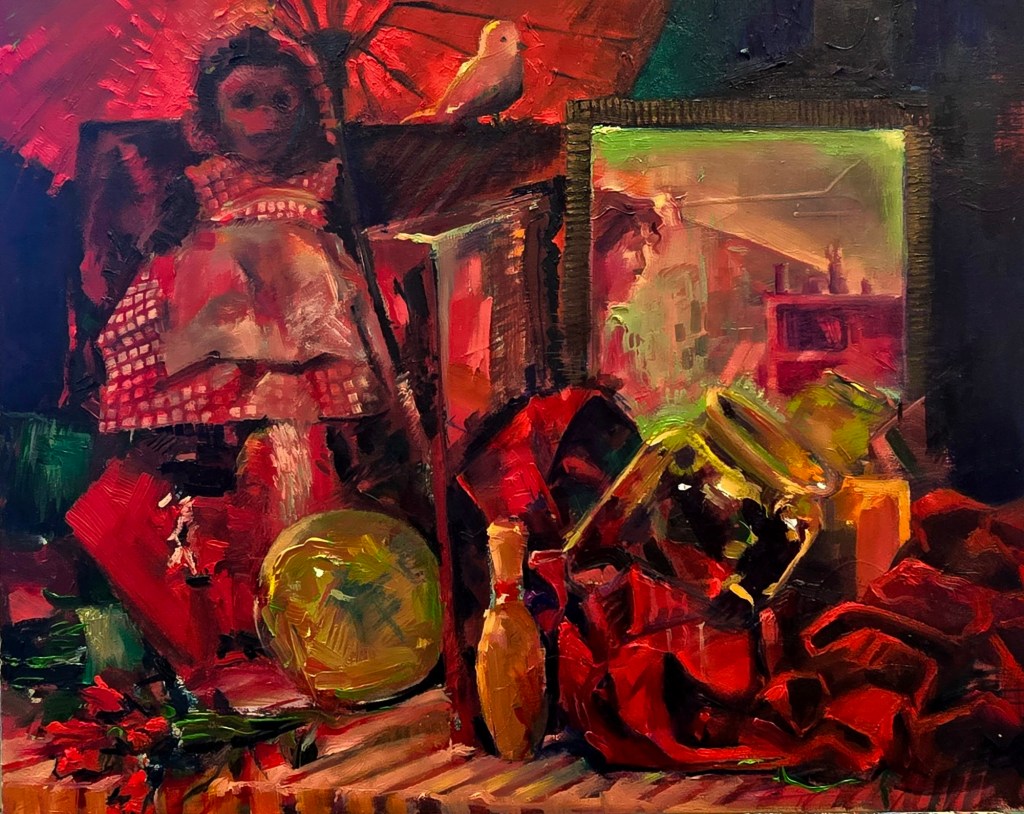 “Duo” Pastel and Charcoal on paper, 2024“It’s a Green Card Thing,” Oil on canvas, 2025